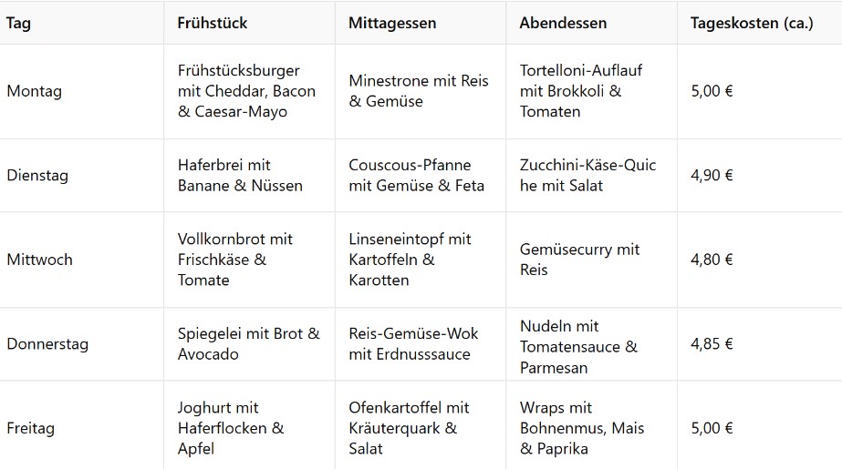 Mit kluger Planung und einfachen Zutaten lässt sich auch mit begrenztem Budget ein vollwertiger Tag gestalten – ohne auf Geschmack, Nährstoffe oder Sättigung zu verzichten.