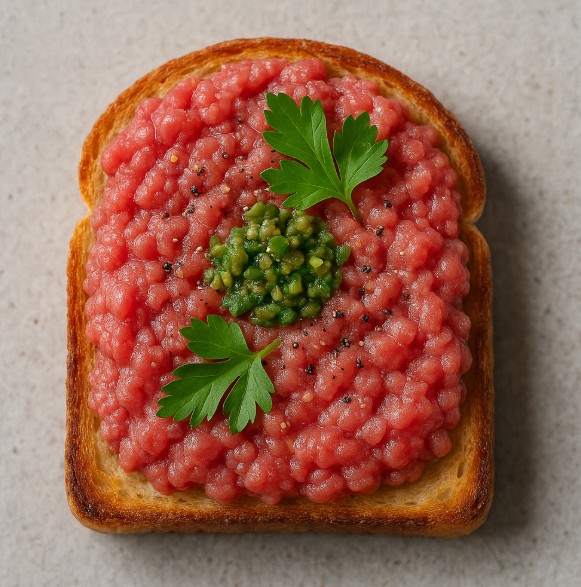 Lecker, leicht und die ideale Alternative zum Hackbrötchen: Steak Tatar. Und zum sofortigen Verzehr bestimmt, denn rohes Hackfleisch verdirbt schnell.